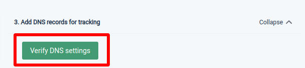 Wenn du auf "Verify DNS settings" klickst und die Prüfung erfolgreich war, wirst du dieses Bild zu sehen bekommen.