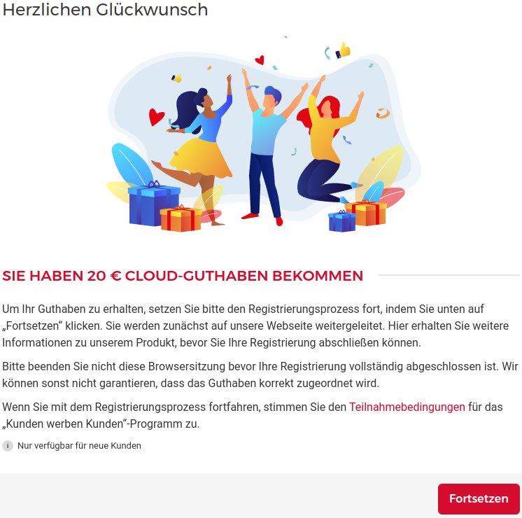 Mit diesem Link kommst du zur Seite von Hetzner, die dir den Gutschein erklärt. Das sieht in etwa so aus: