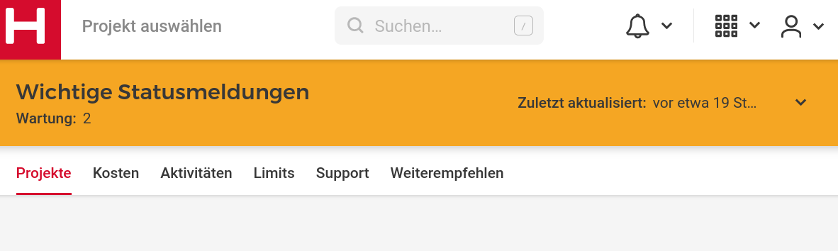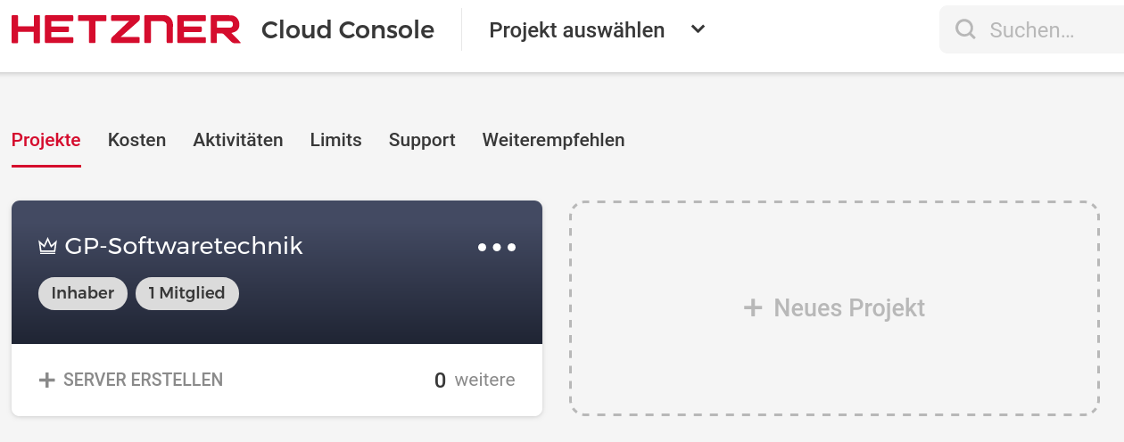 Projekten können mehrere vServer enthalten. Falls du ein Projekt zur Zusammenarbeit mit anderen Administratoren (wie zum Beispiel mir) erstellst, bitte gib dem Projekt als Name den Firmennamen ein. Stelle dir vor, es gibt Administratoren, die mit vielen Leuten und Firmen zusammenarbeiten. Wenn die Projekte keine guten Namen haben, dann kennt sich der Administrator nicht mehr aus.
