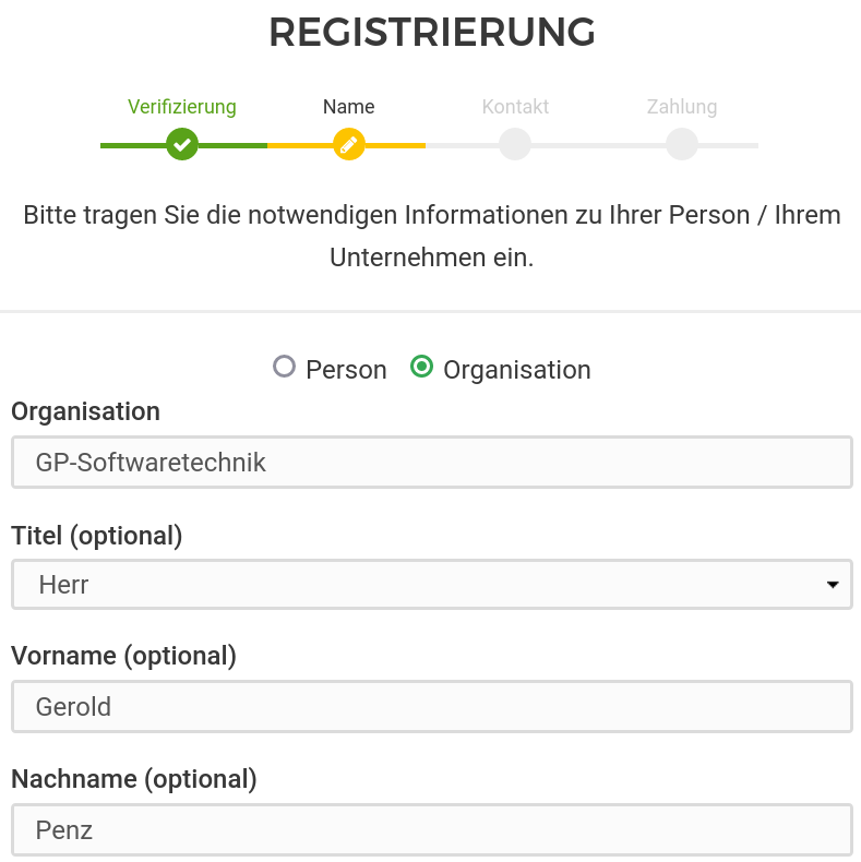 Achte darauf, dass du "Organisation" auswählst, wenn du den Account für deine Firma erstellst.