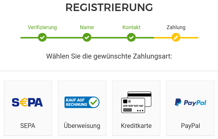 Und wieder geht es mit einem Klick auf die "Weiter"-Schaltfläche zur nächsten Seite. Auf dieser Seite kannst du auswählen, wie du die monatliche Abrechnung bezahlen möchtest.