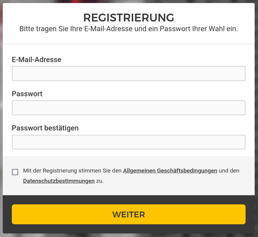 Es öffnet sich die Registrieren-Seite. Dort kannst du deine E-Mail-Adresse und dein Passwort eingeben.